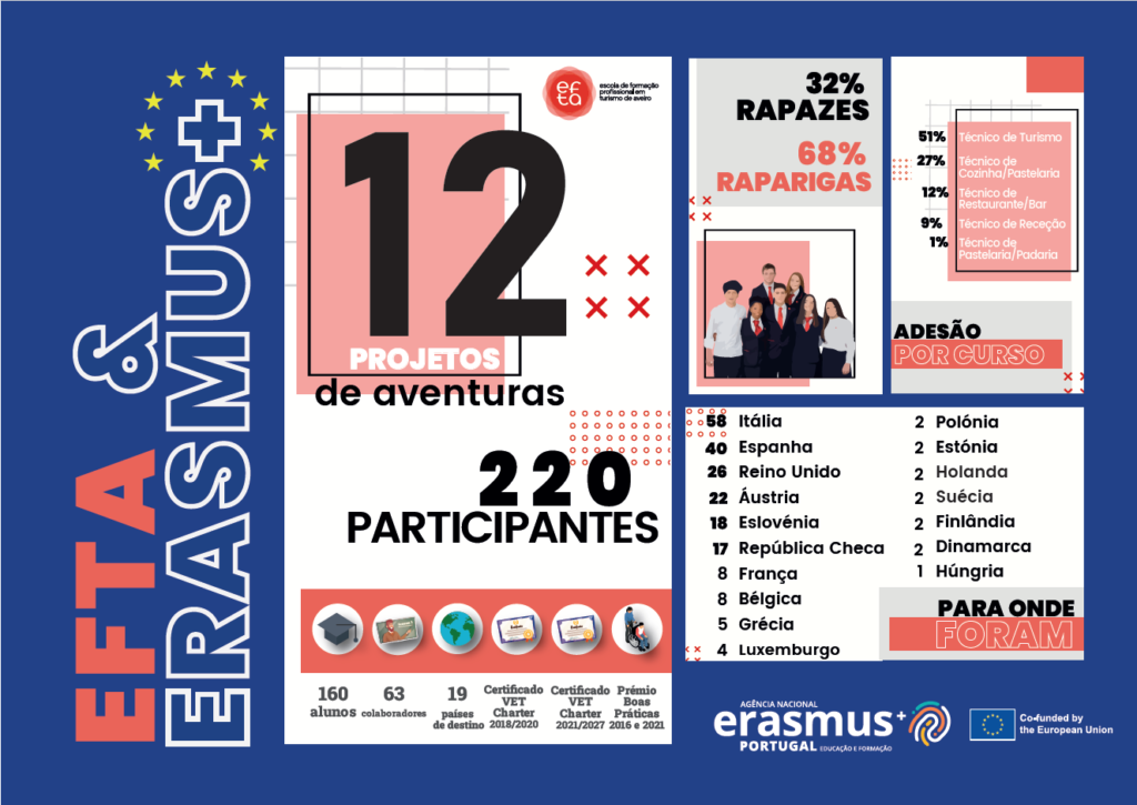 A experiência da EFTA no âmbito dos projetos de mobilidade internacional desde 2013 foi reconhecida através da atribuição a nível nacional dois Prémios Boas Práticas Erasmus+ (2016 e 2021).